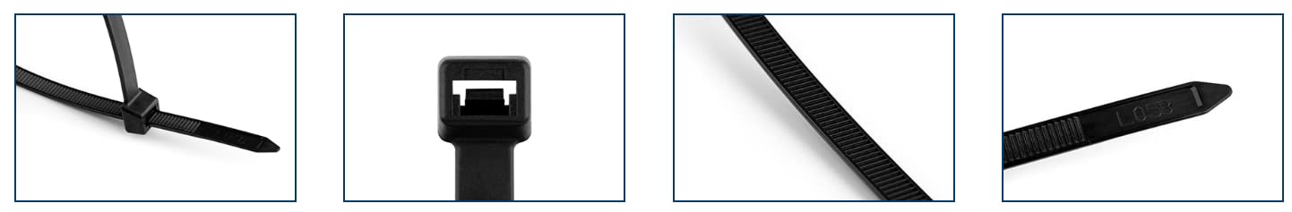 Hvit nylon strips. Designet for å feste elementer som rør, slanger eller kabelbunter. Den er sertifisert i henhold til UNE-EN 62275.
